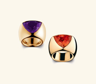Bagues: Or rose, Tanzanite et Grenat.