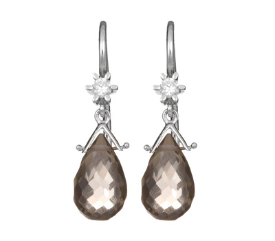 Boucles d’oreilles Quartz Fume, Diamants, Or gris. 350€