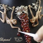 Mais après les rêves et idées jetées sur le papier, le plus dur reste à concrétiser..! S’en suit alors de longues recherches entre les coloris de pierres pour représenter l’arc-en ciel des couleurs animalières, les matériaux les plus appropriés pour chaque petit protégé, les échelles de réalisations, l’émotion à faire transparaître.. Des recherches qui aboutissent à de très nombreuses heures de fabrications, sertissage et polissage pour les petites mains de la Maison Chopard!