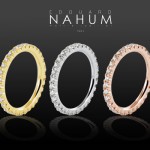 À l’affiche en ce moment, les alliances d’Édouard Nahum revisitent à merveille les beaux classiques joailliers, en proposant aux futurs mariés, des alliances en or rose, jaune ou blanc, entièrement pavée de diamants.